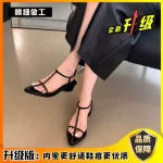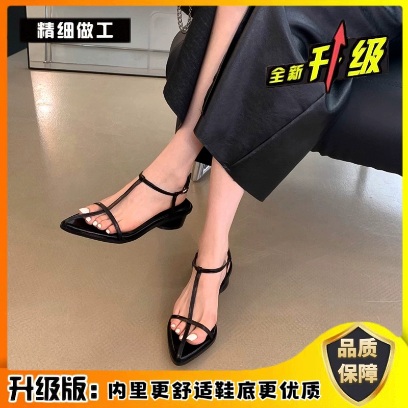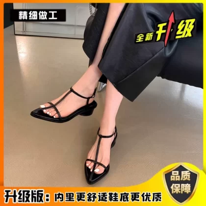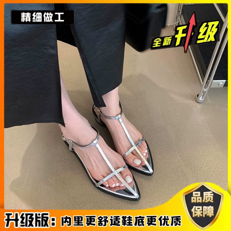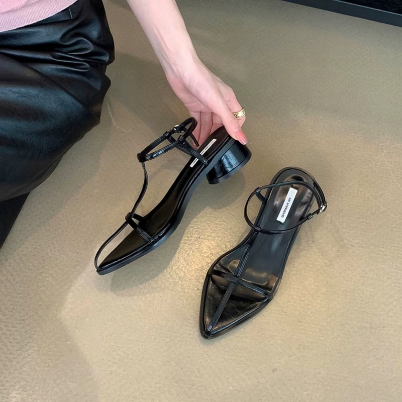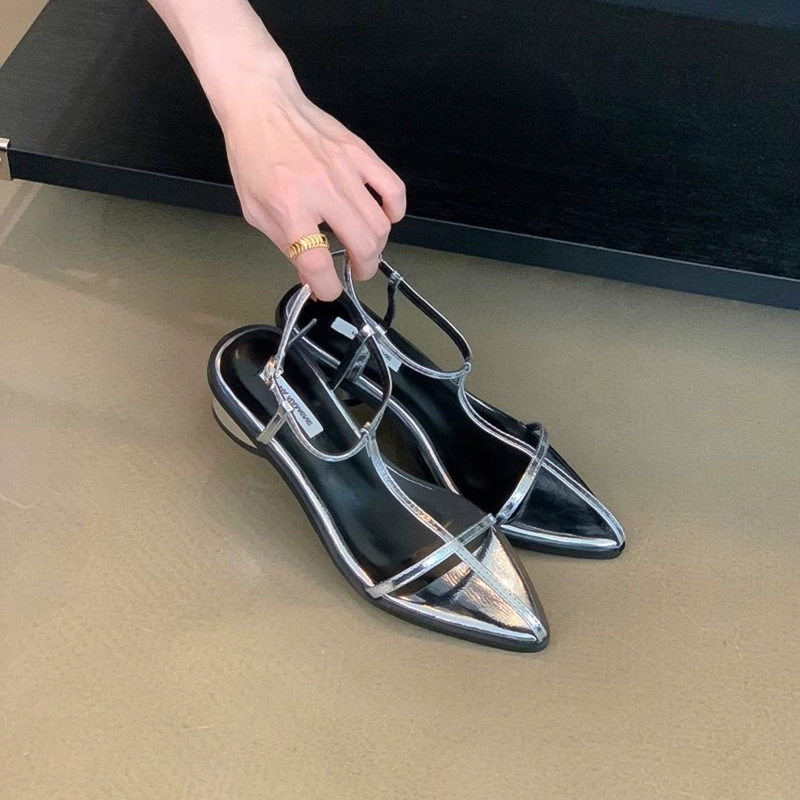Pointed toe flat bottom beach Korean sexy one-line buckle belt
