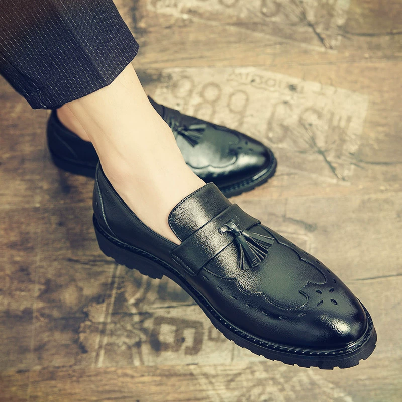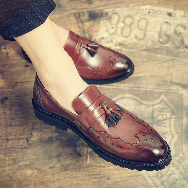 Pointed toe lazy slip-on leather shoes for men, casual formal wear, wedding trendy shoes, British versatile inner height increasing bean shoes for men