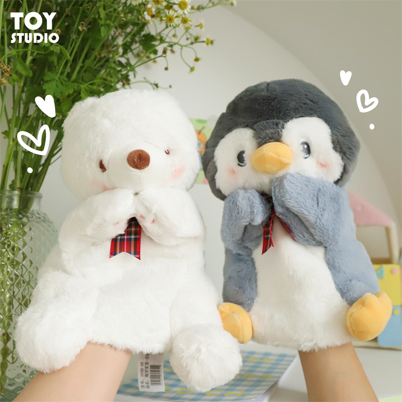 Polar Bear Little Penguin Hand Puppet Cute Sticker Ins Japanese Plush Muppet Soothing Toy Vembiloqui Doll