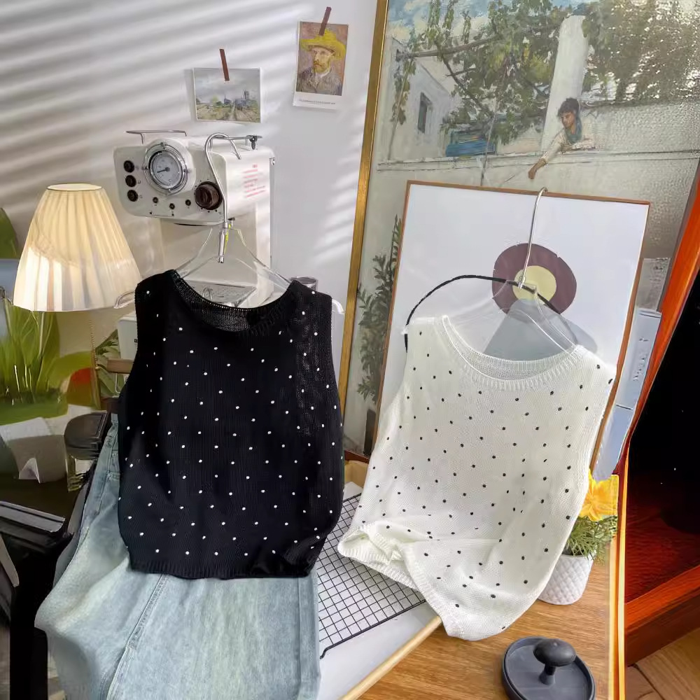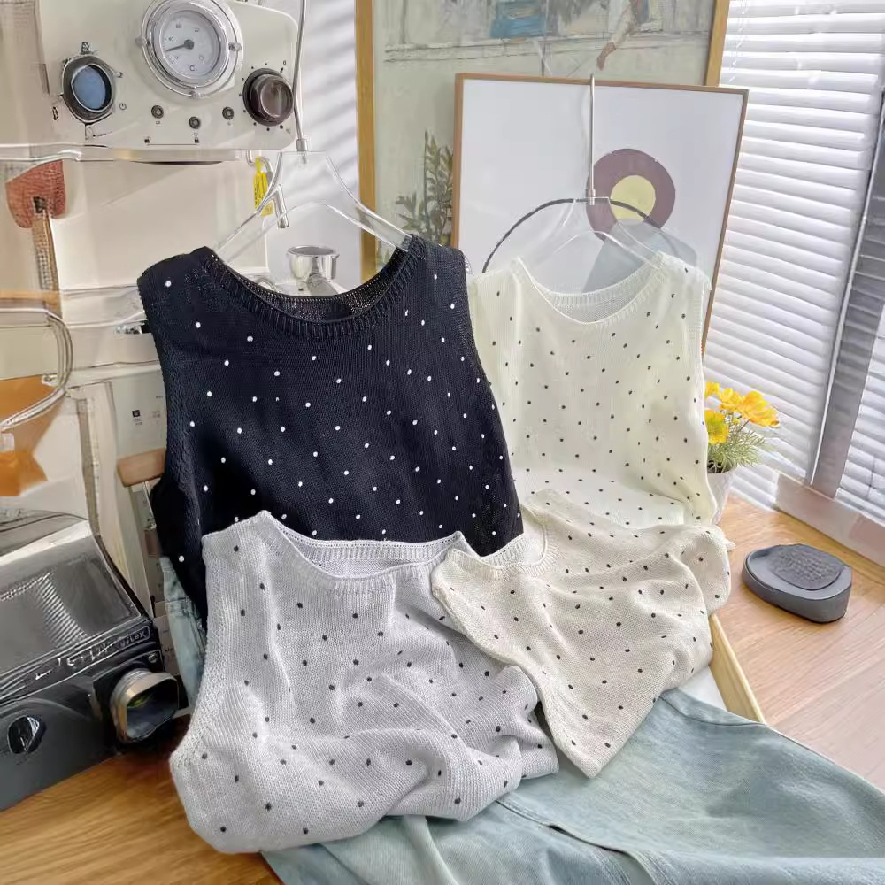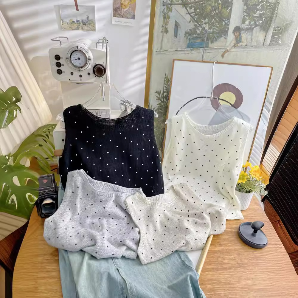 | nameOriginal | Polar Dot Knitted Vest Women's Summer New Korean Girly Slim-Fit Slimming Sleeveless Outer Wear Base Top 4524 |