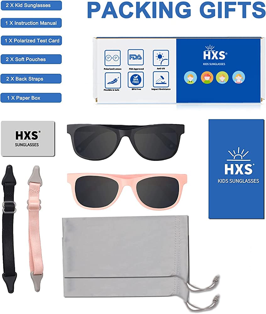 | nameOriginal | HXS 2 Pack Toddler Sunglasses Polarized with Strap for 0-24 Months/2-8 Years Kids, Girls Boys Baby Glasses UV Protection |