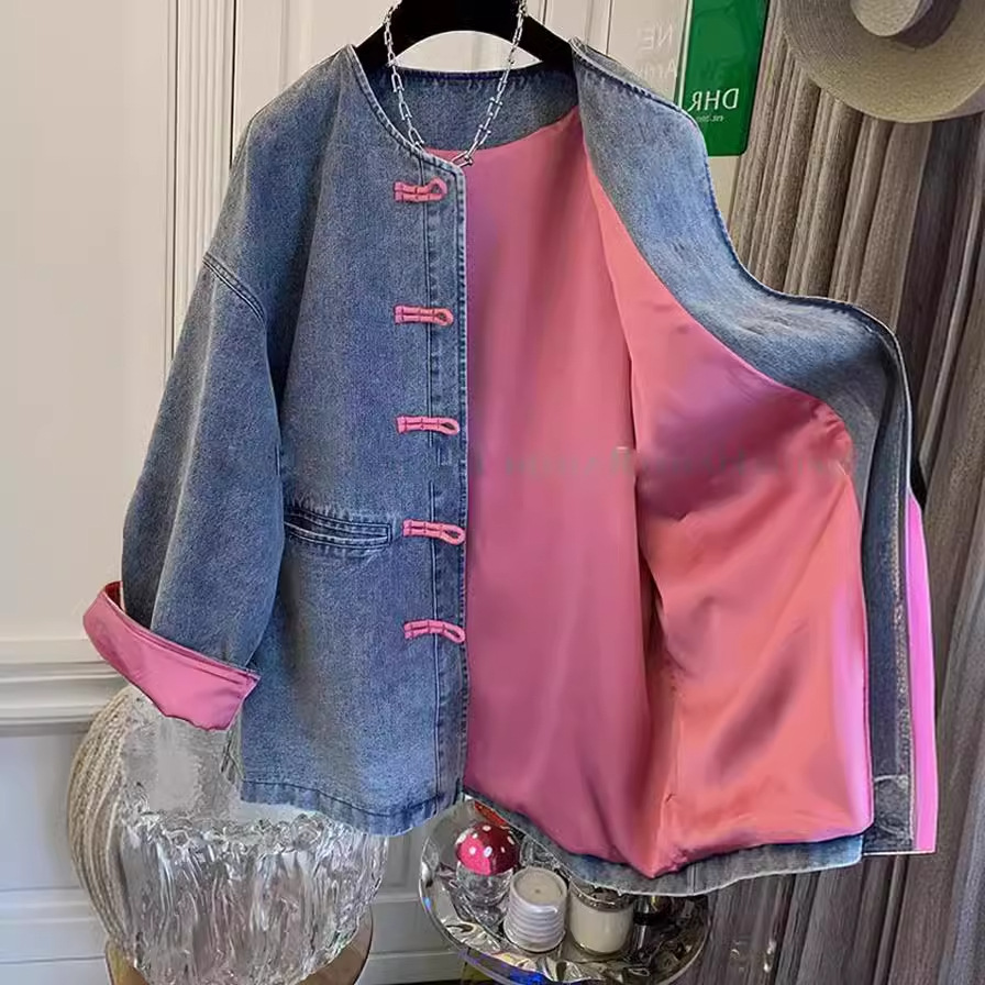 | nameOriginal | Pole-level super-nice contrast color new Chinese-style cowboy jacket jacket women's loose lazy style new 2024 |