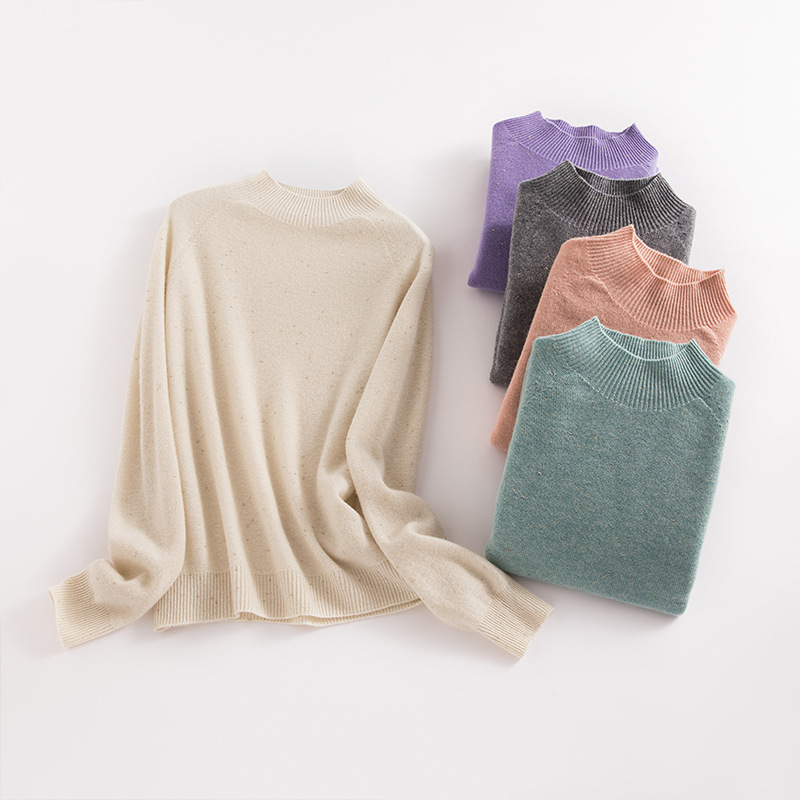 | nameOriginal | Pole Quality Seamless One-piece 100 Woolen Sweater Women's Bright Silk Gold Bean Yarn Knitted Sweater Autumn and Winter Half-turtleneck Base Sweater |
