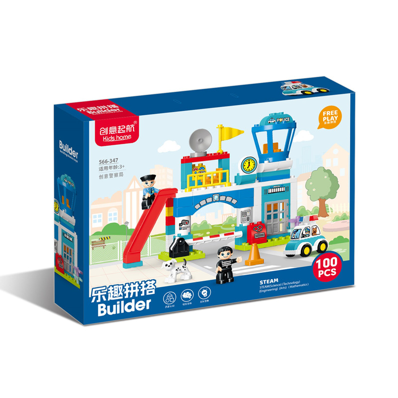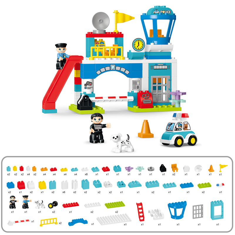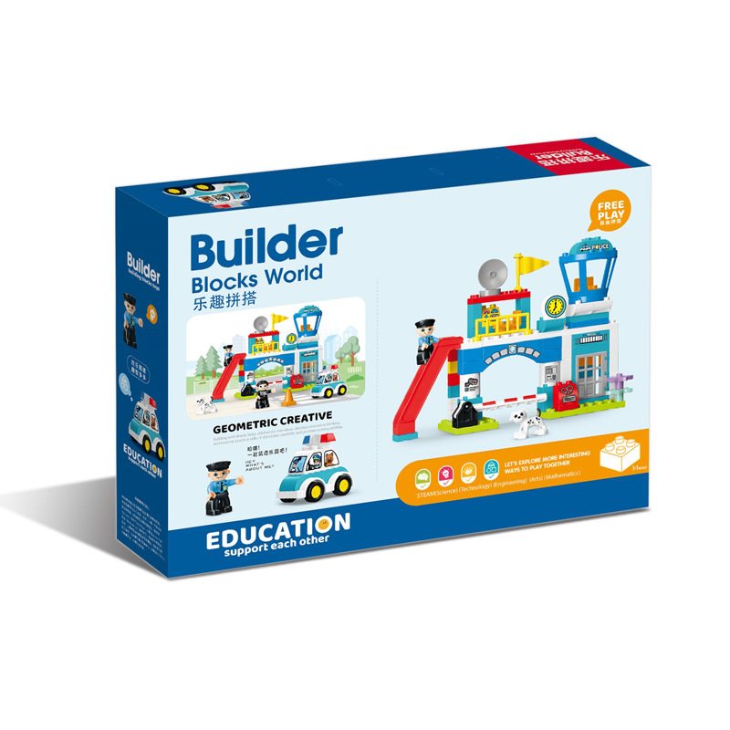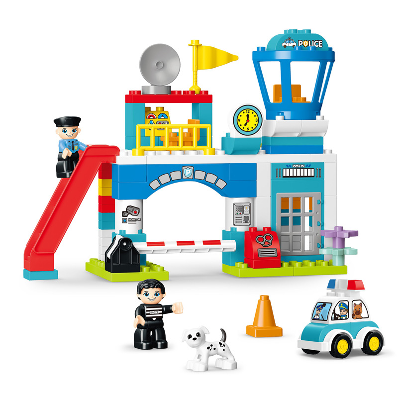 Police station building blocks assembling toys educational large particle large plastic 3-5 years old police car kindergarten institution teaching aids