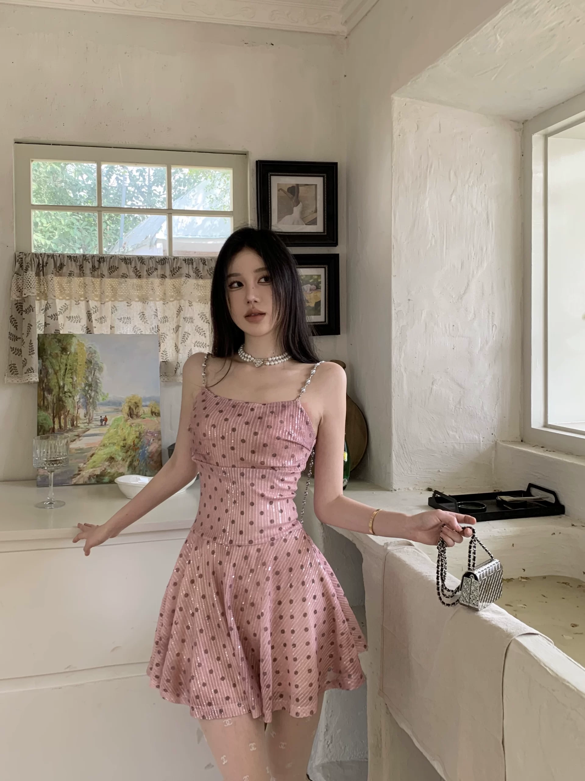 | nameOriginal | Polka dot chain suspender dress summer sweet and spicy sequins |