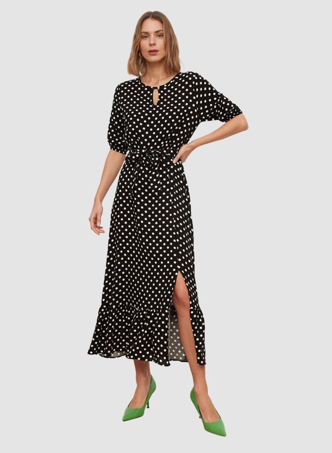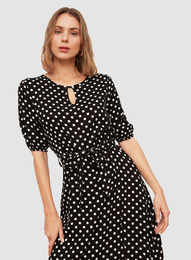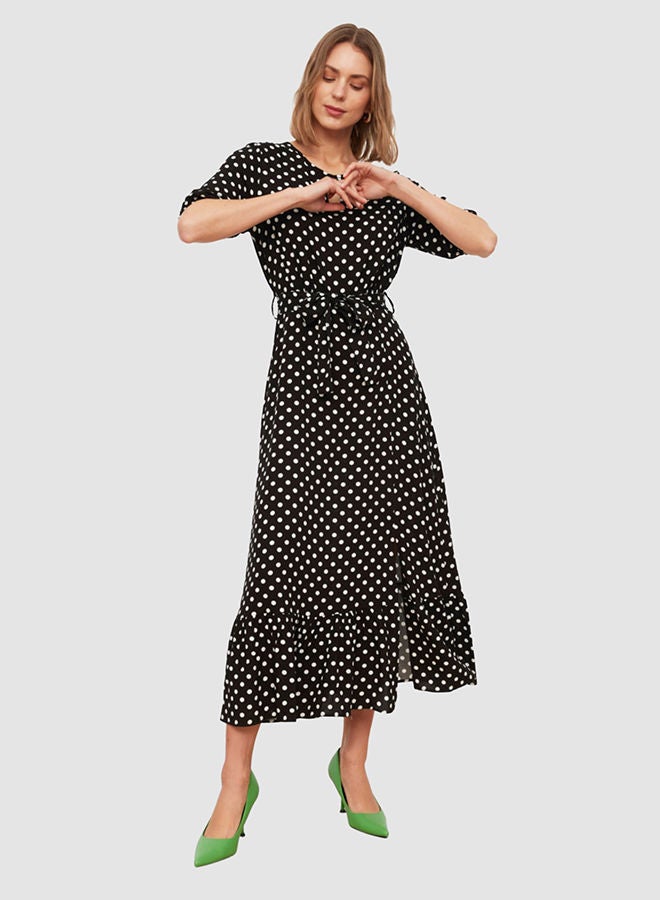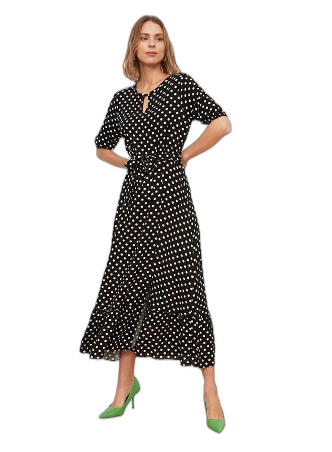 This product features a gentle and airy viscose material that is easy to wear. It includes a notch neckline and short sleeves for a stylish look. Additionally, it comes with a self-tie belt to cinch at the waist for a flattering fit. Please follow the care label instructions when washing.