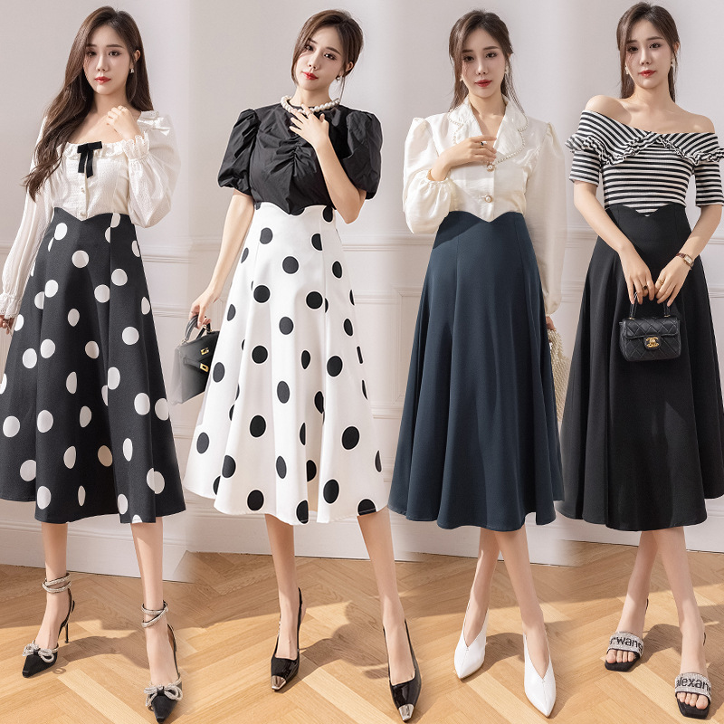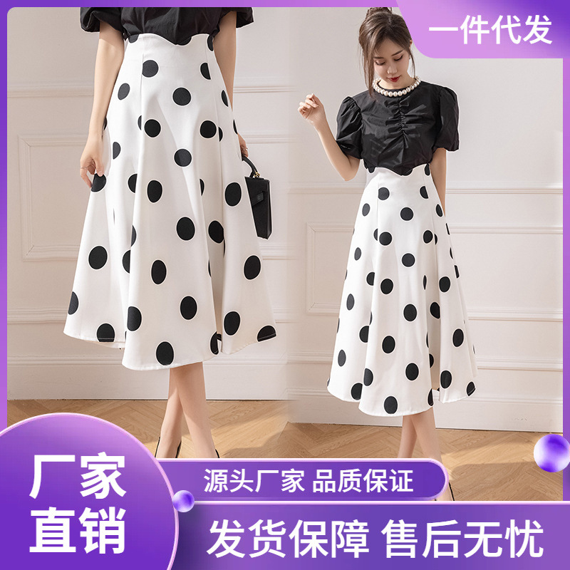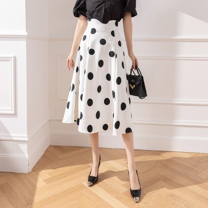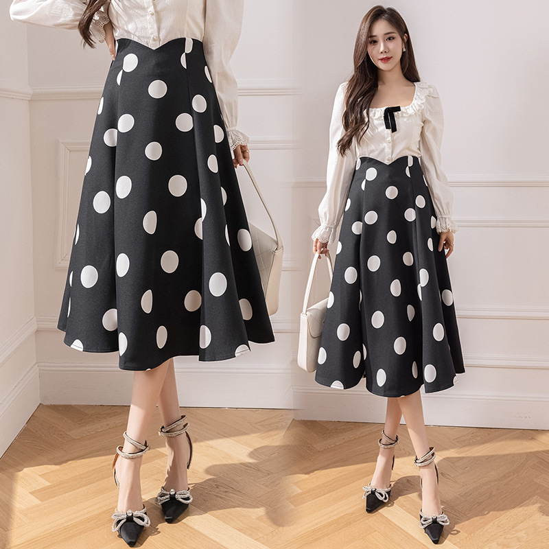 | nameOriginal | Polka Dot Mid-length Skirt Women's Spring and Summer 2024 New Fishtail Long Skirt A- line Slimming Large Swing Polka Dot Skirt |
