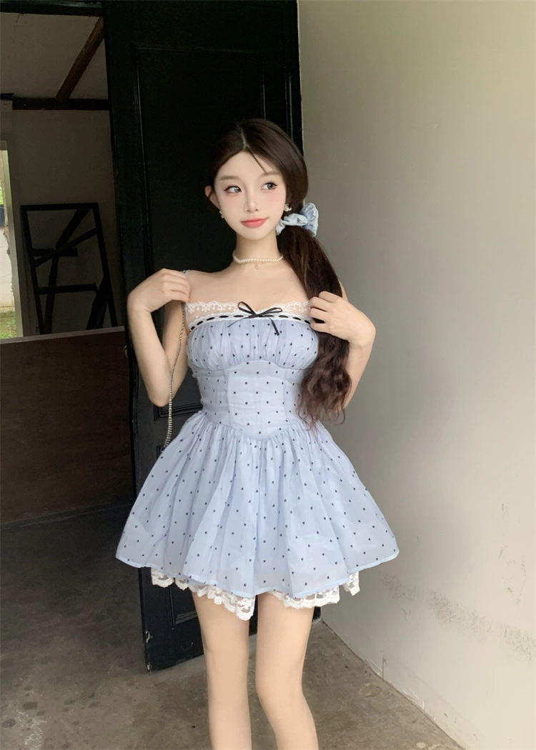 Polka dot suspender dress summer sweet bow