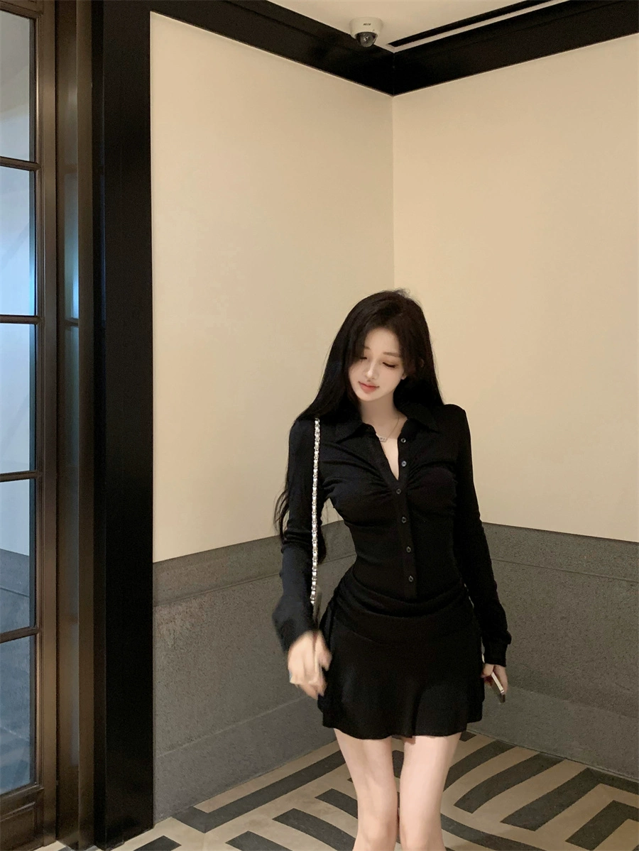 | nameOriginal | Polo black summer American long-sleeved a-line dress |
