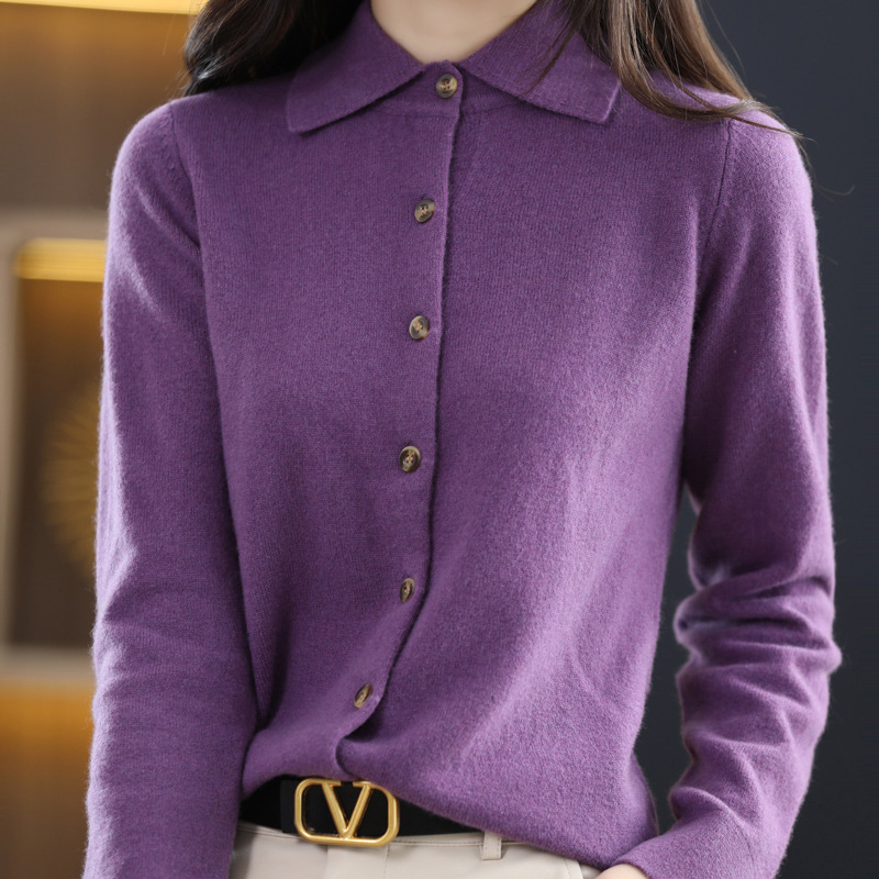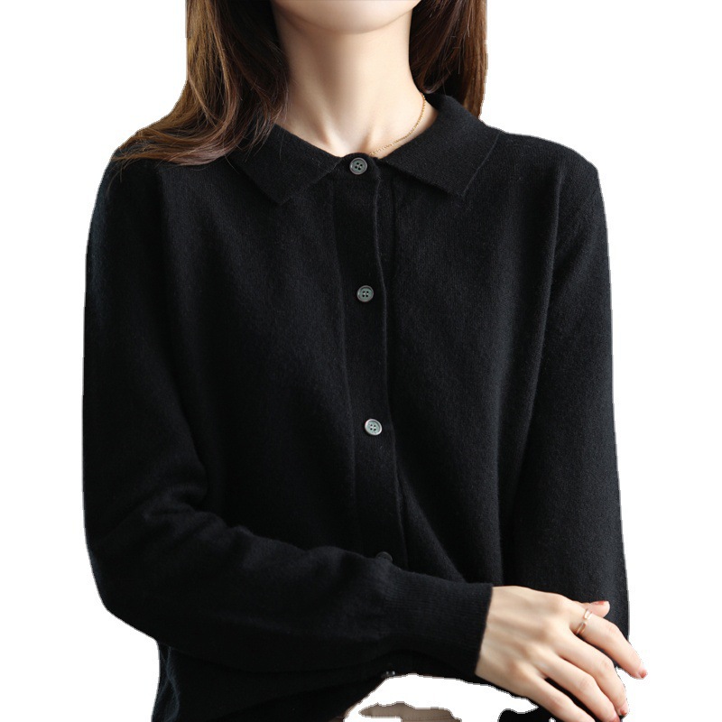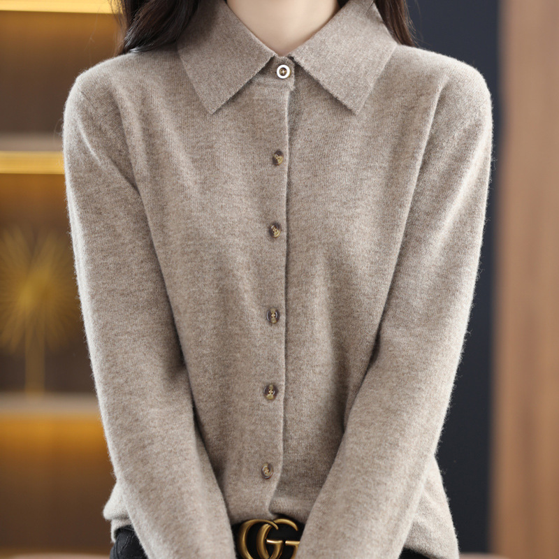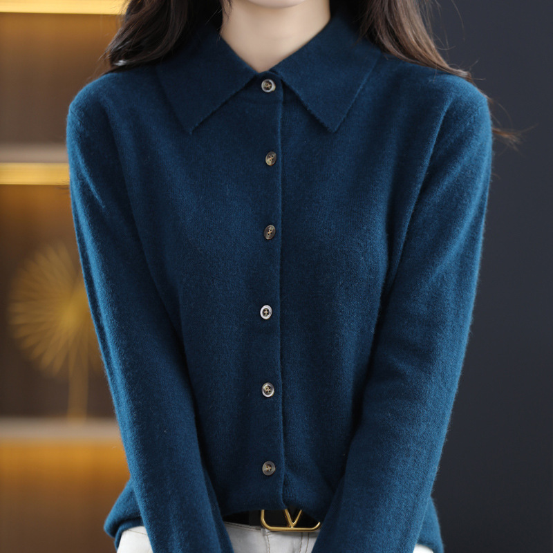 | nameOriginal | Polo collar 100 pure wool sweater women's shirt collar sweater cardigan base sweater loose cashmere sweater western style |
