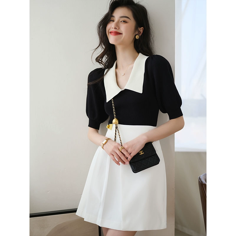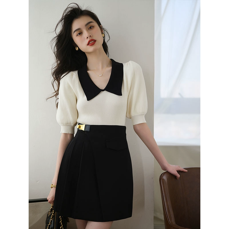 | nameOriginal | Polo collar French contrasting quarter-sleeved sweater t-shirt |