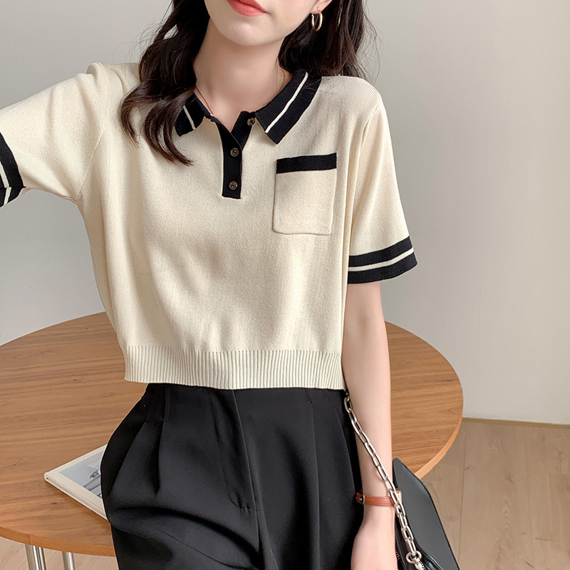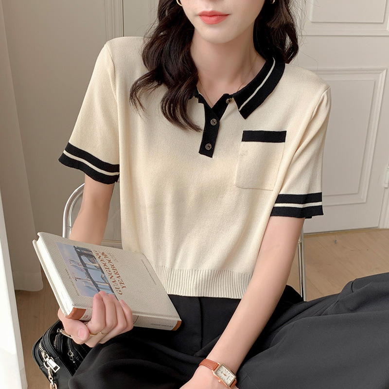 | nameOriginal | Polo collar short sleeve women's T-shirt 2023 new summer sweater short loose ins trendy top ice silk base shirt |