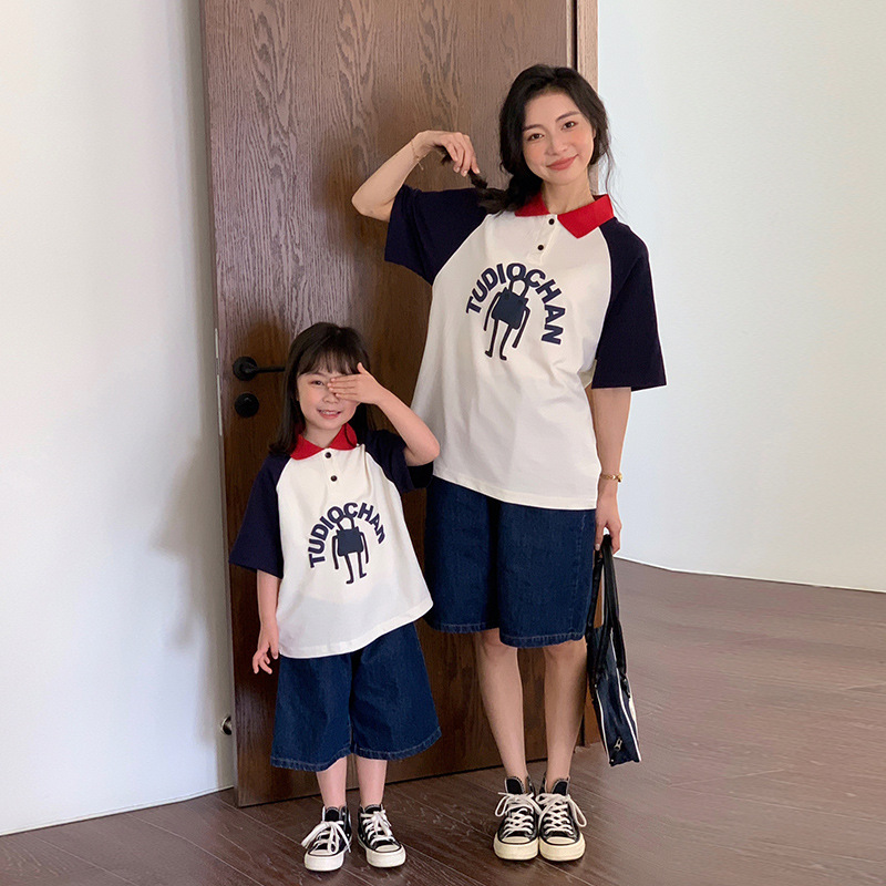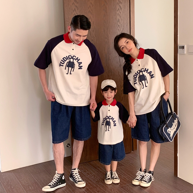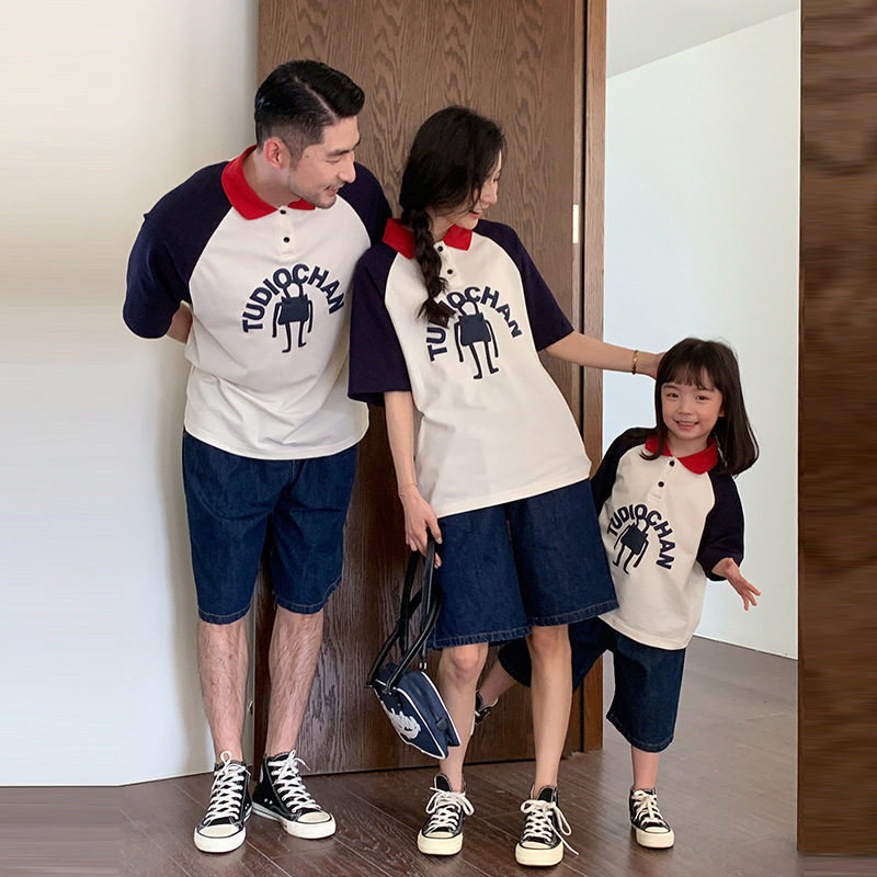 | nameOriginal | polo collar short-sleeved T-shirt parent-child wear summer design sense heavy-duty printing stitching short-sleeved shirt for a family of three or four |