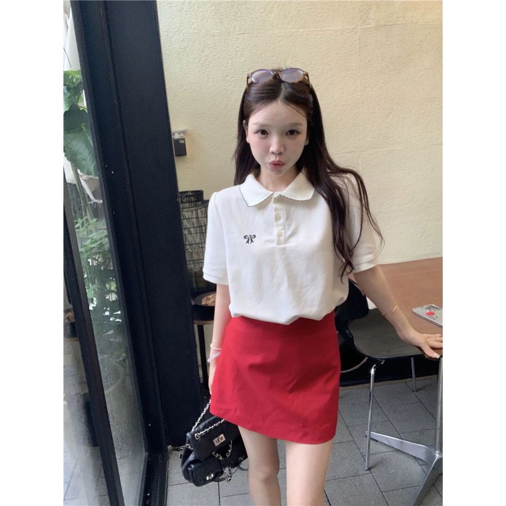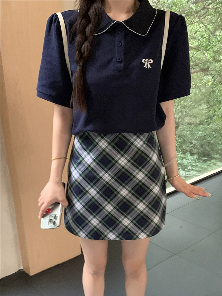 | nameOriginal | Polo collar short-sleeved T-shirt plaid hip bow tie |