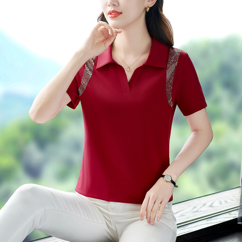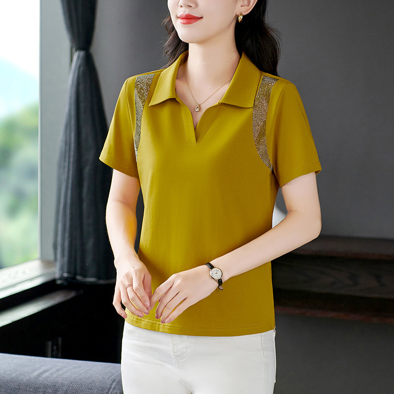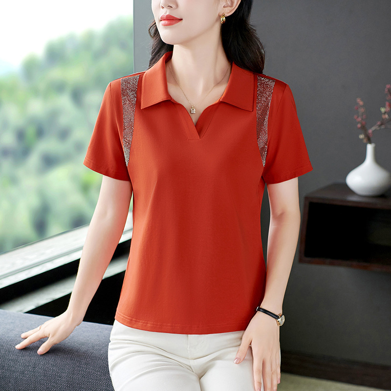 | nameOriginal | Polo Collar Short-sleeved T-shirt Women's 2024 New Fashionable Summer Thin Loose Large Size T-shirt for Middle-aged Mothers |