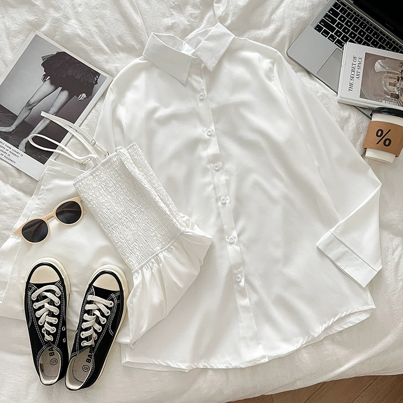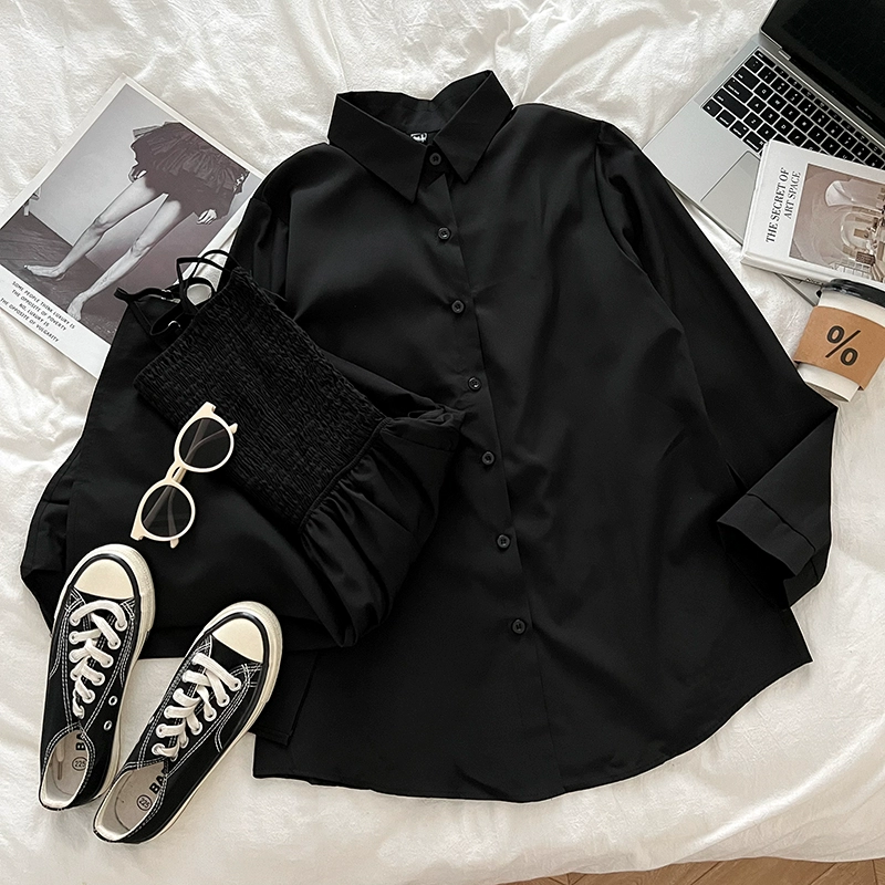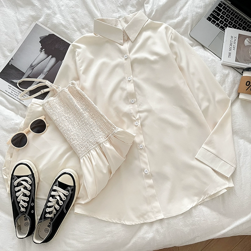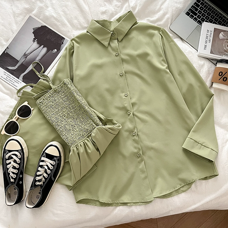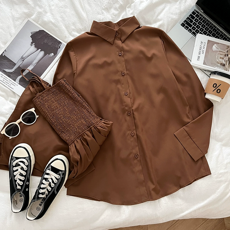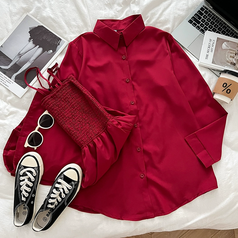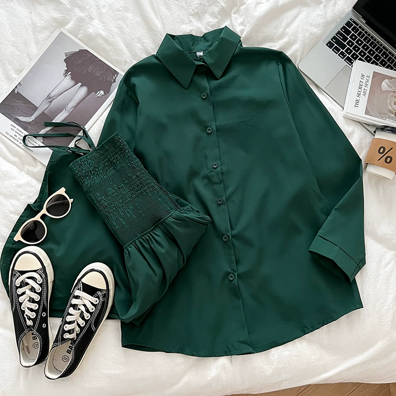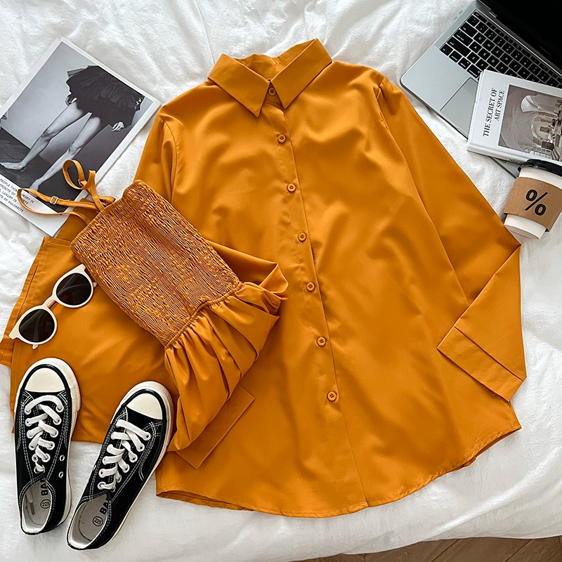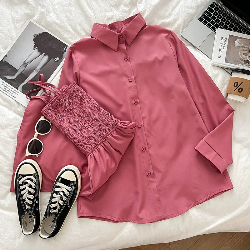 | nameOriginal | Polo collar single-breasted long-sleeved shirt + tube top waist slimming suspender jumpsuit wide-leg pants casual two-piece set |