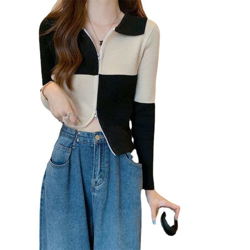 | nameOriginal | Polo collar zipper long sleeve sweater women's autumn 2024 new design sense niche high waist short top coat |