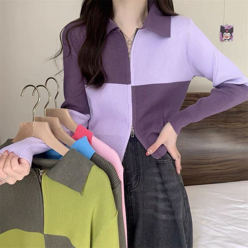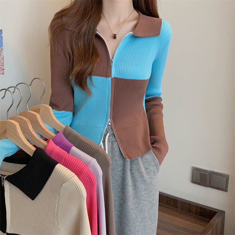 Polo collar zipper long sleeve sweater women’s autumn 2024 new design sense niche high waist short top coat