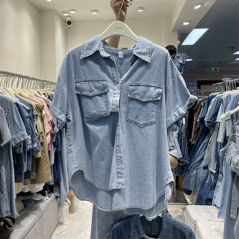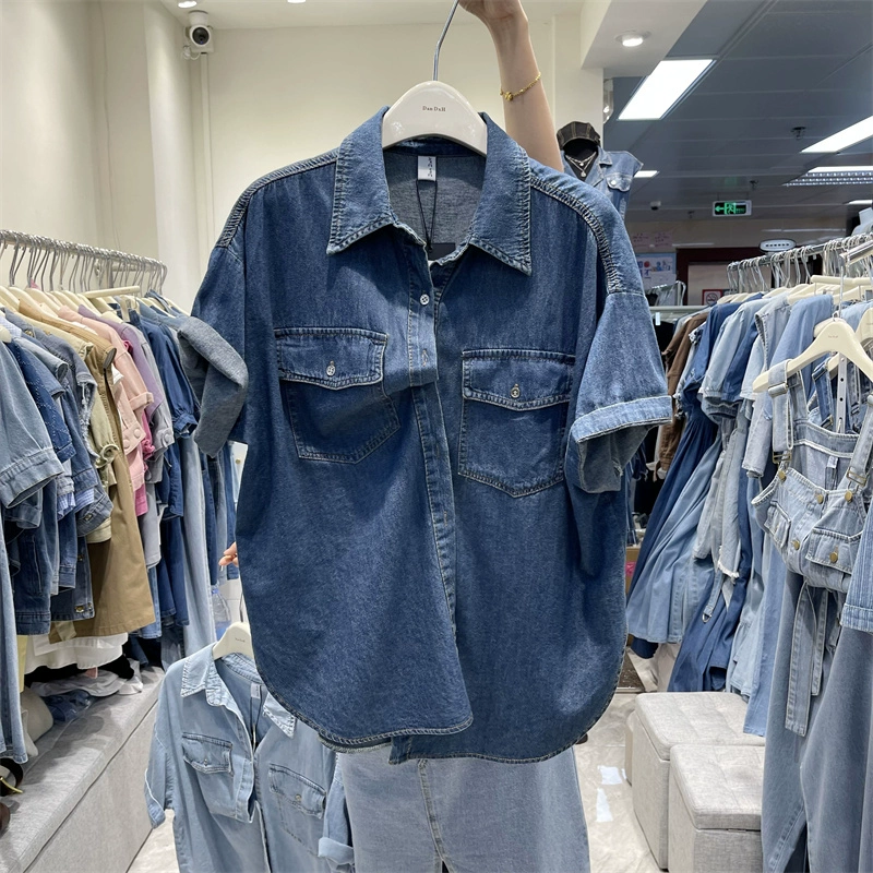 Polo fashionable denim single-breasted cardigan jacket short sleeves