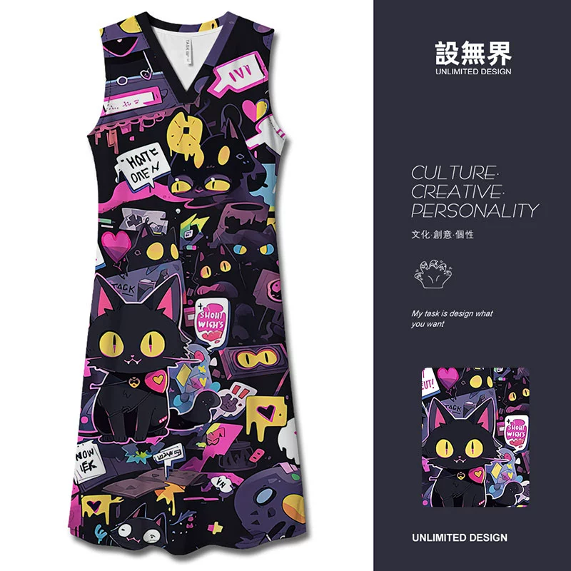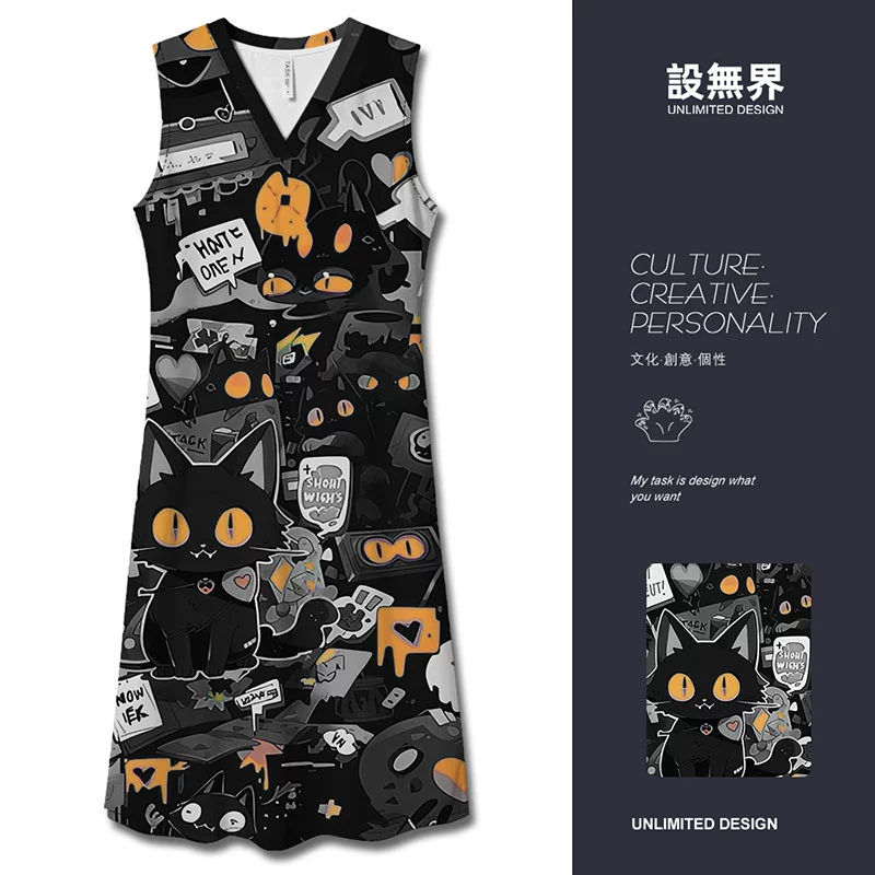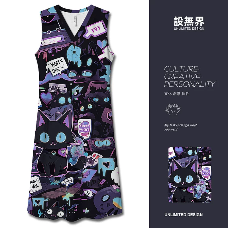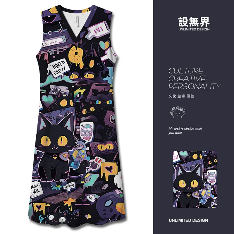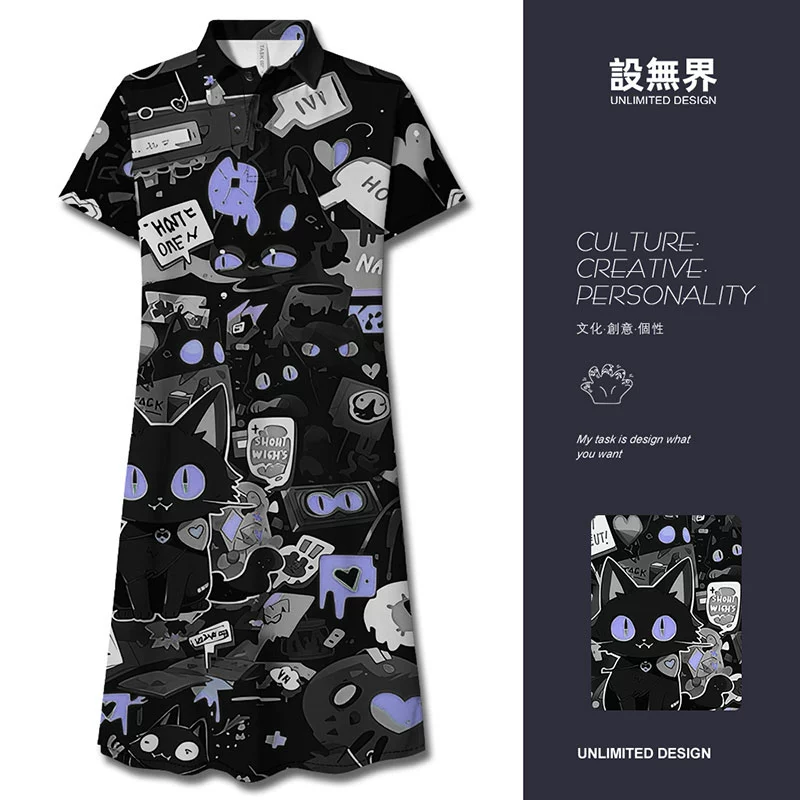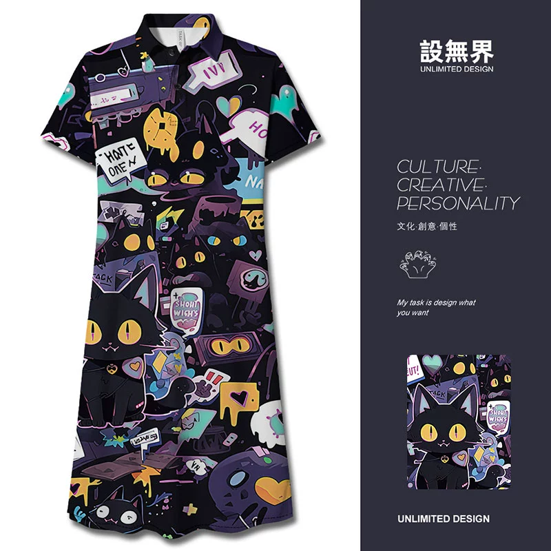 | nameOriginal | POLO graffiti black cat funny and interesting long dress |