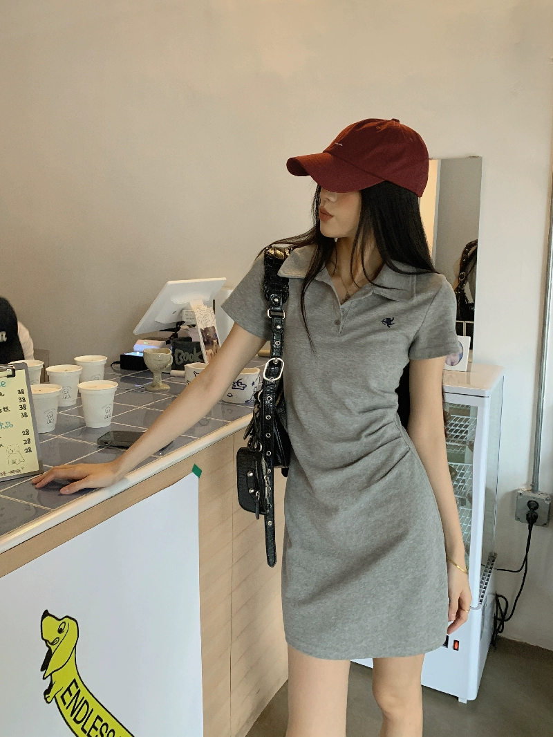 | nameOriginal | polo gray short sleeve dress summer casual embroidery |