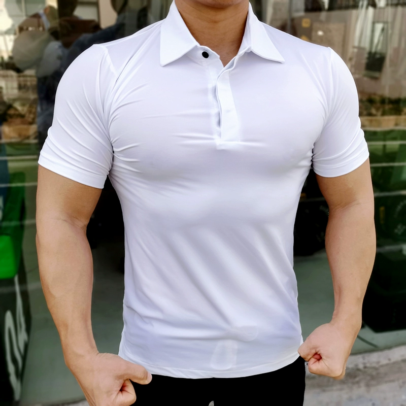 | nameOriginal | POLO high elastic slim running coach work clothes short sleeves |
