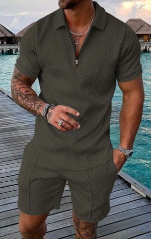 | nameOriginal | POLO Lapel T-Shirt Short Sleeve Suit POLO zipper lapel short sleeve suit |