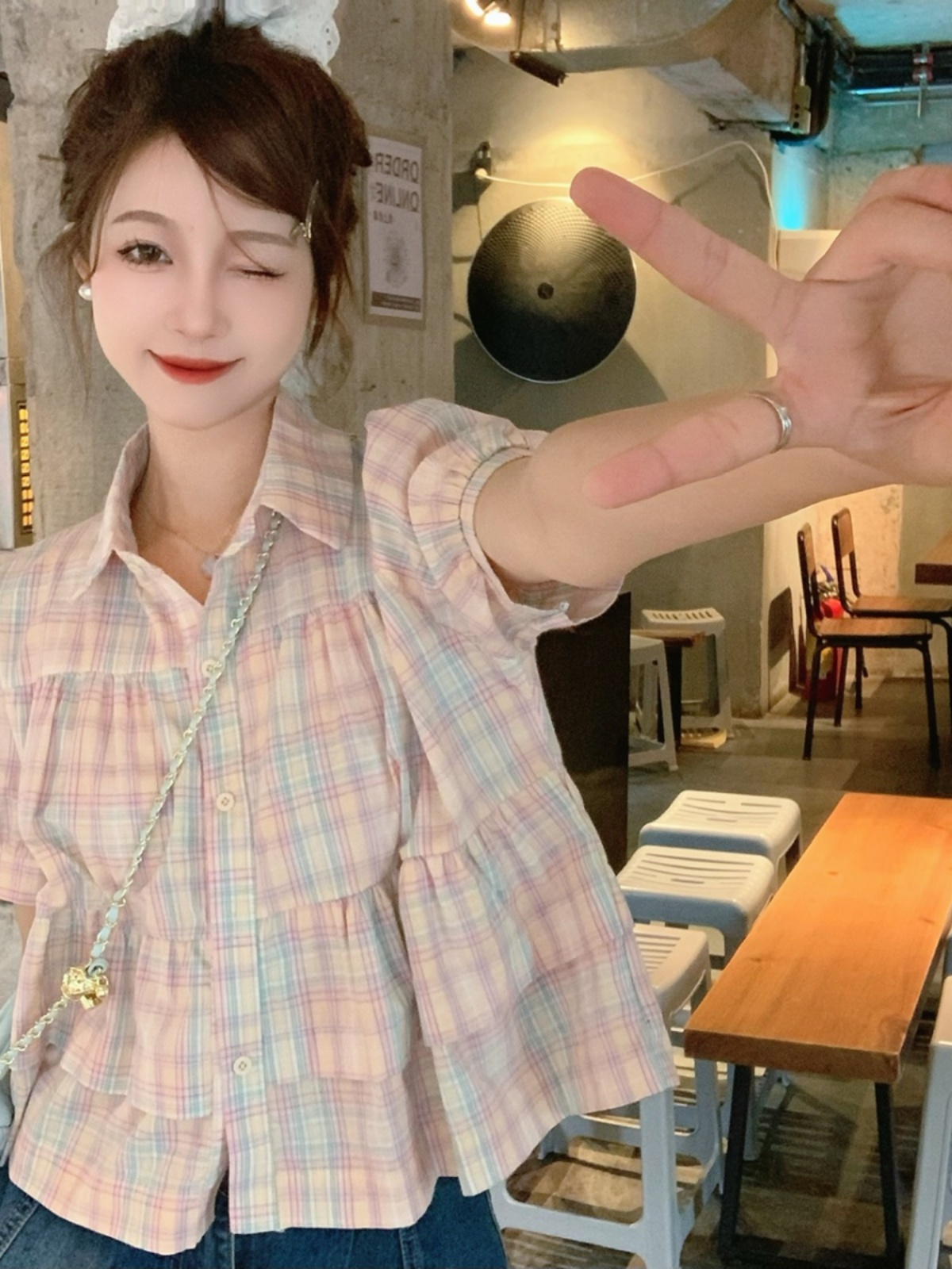 POLO large size French age-reducing fat MM plaid short sleeves