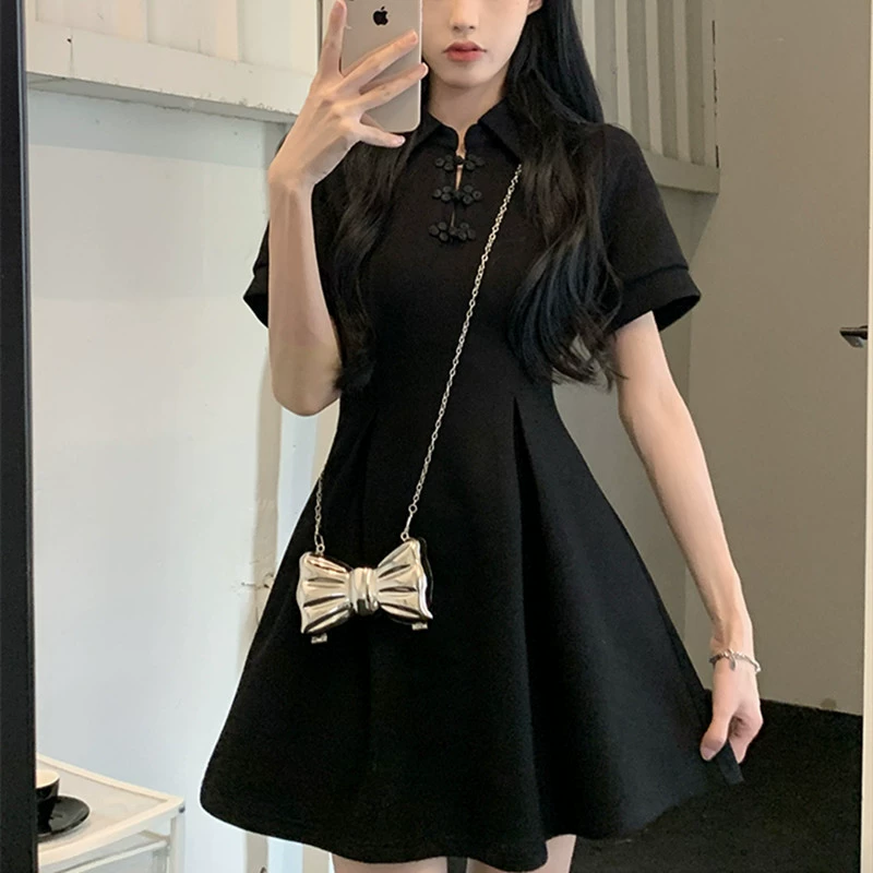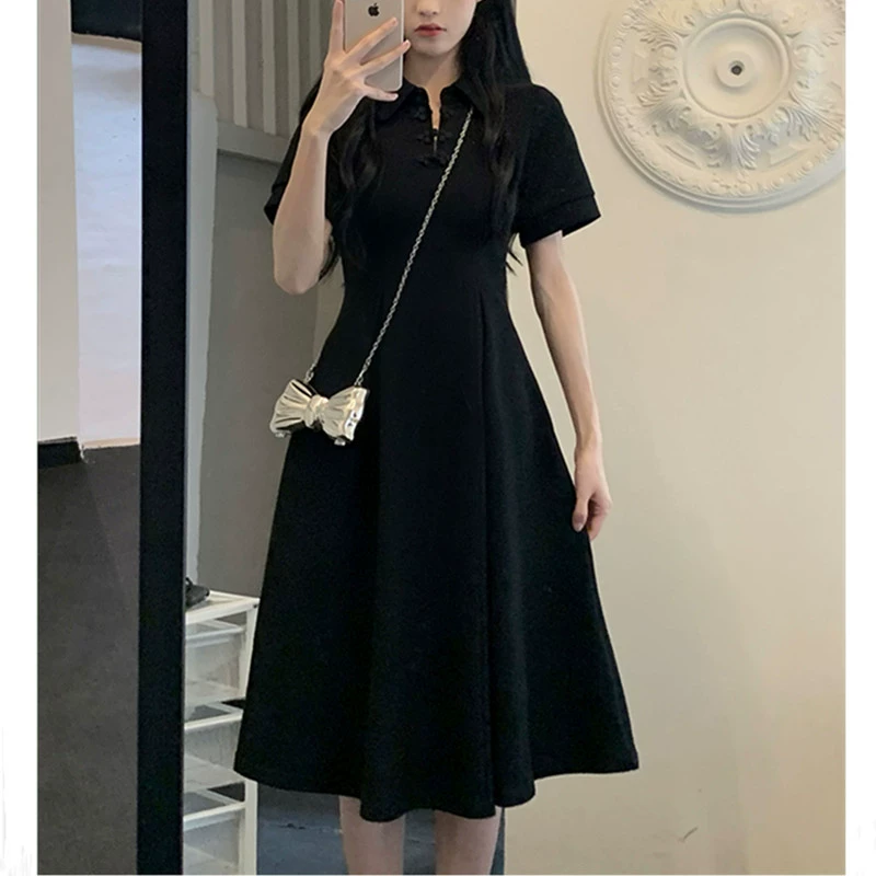 | nameOriginal | POLO large size retro little black dress summer fat mm buckle |