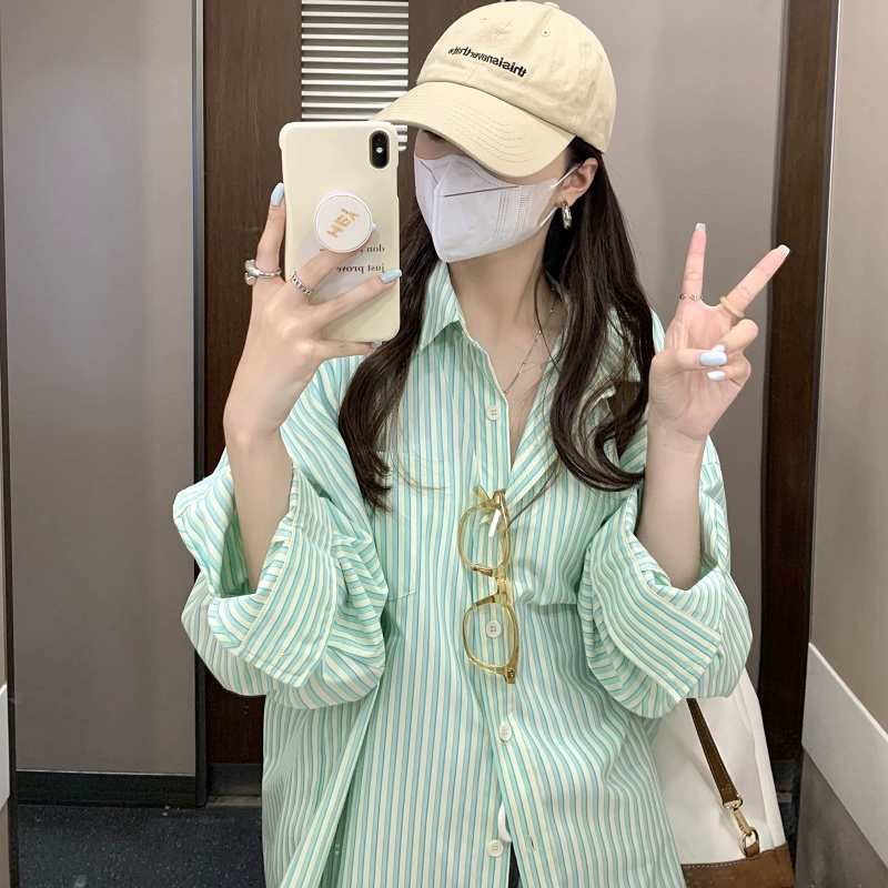 POLO loose mid-length BF style sun protection striped shirt