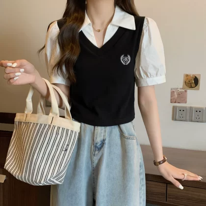 | nameOriginal | polo plus size fat MM slim short style niche fake two pieces |