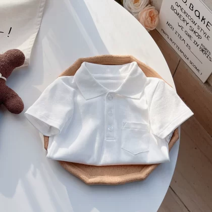| nameOriginal | POLO pure cotton simple school uniform white shirt lapel children's clothing |