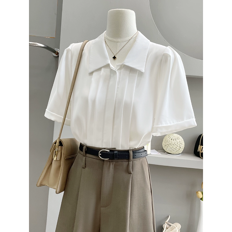 | nameOriginal | POLO right shoulder niche pleated top short-sleeved shirt |