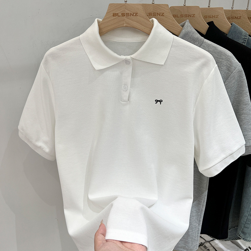| nameOriginal | Polo Shirt Bow Embroidered Short-sleeved T-shirt Women's 2024 Summer New Style Chic White Base Shirt Top |