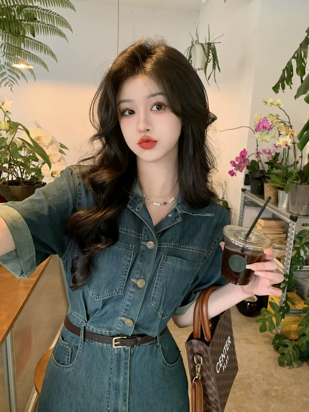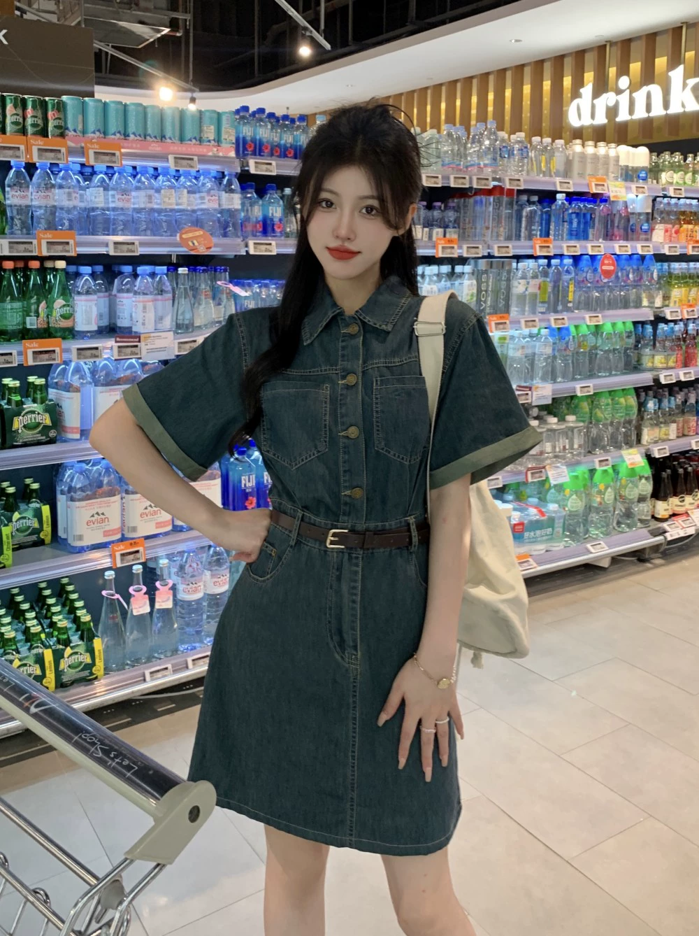 | nameOriginal | polo short-sleeved summer niche waist denim dress |