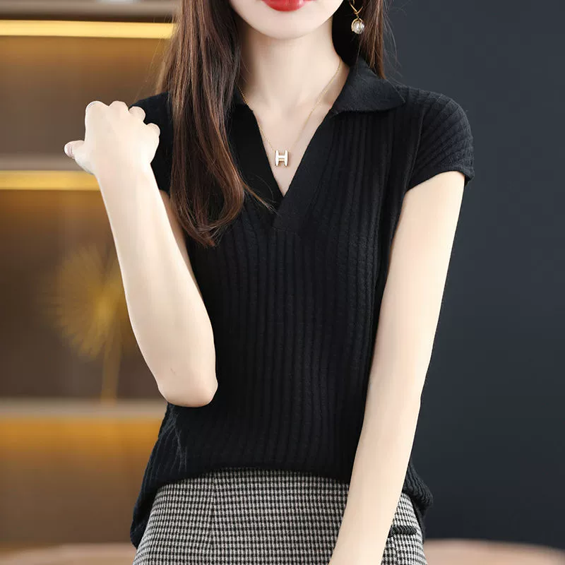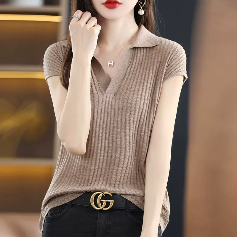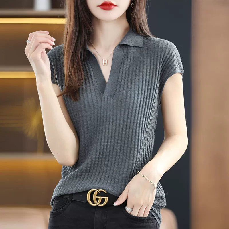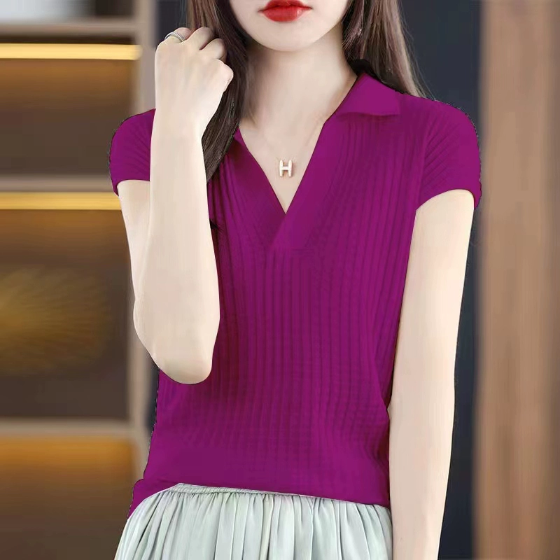 polo short-sleeved sweater women’s lapel ice silk t-shirt