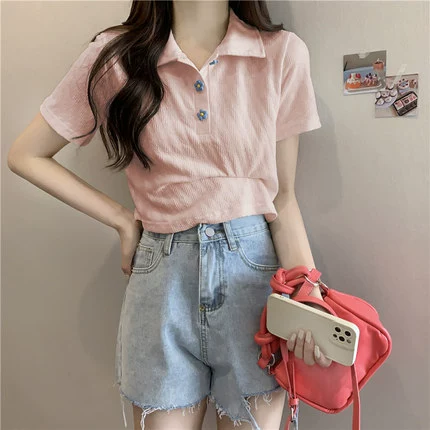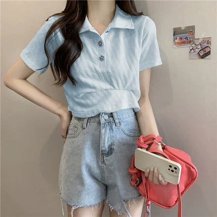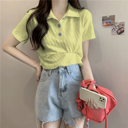 | nameOriginal | polo shoulder summer niche top short-sleeved T-shirt |
