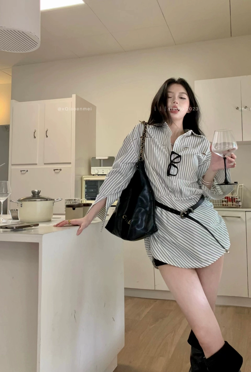 polo striped dress irregular long sleeve shirt