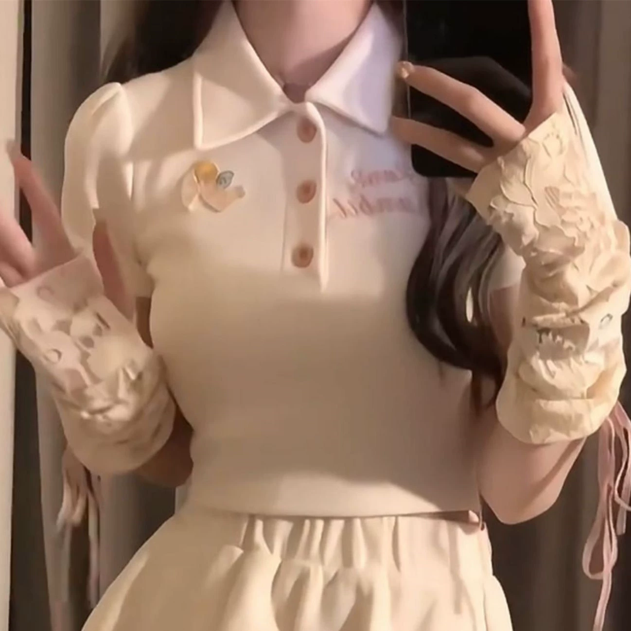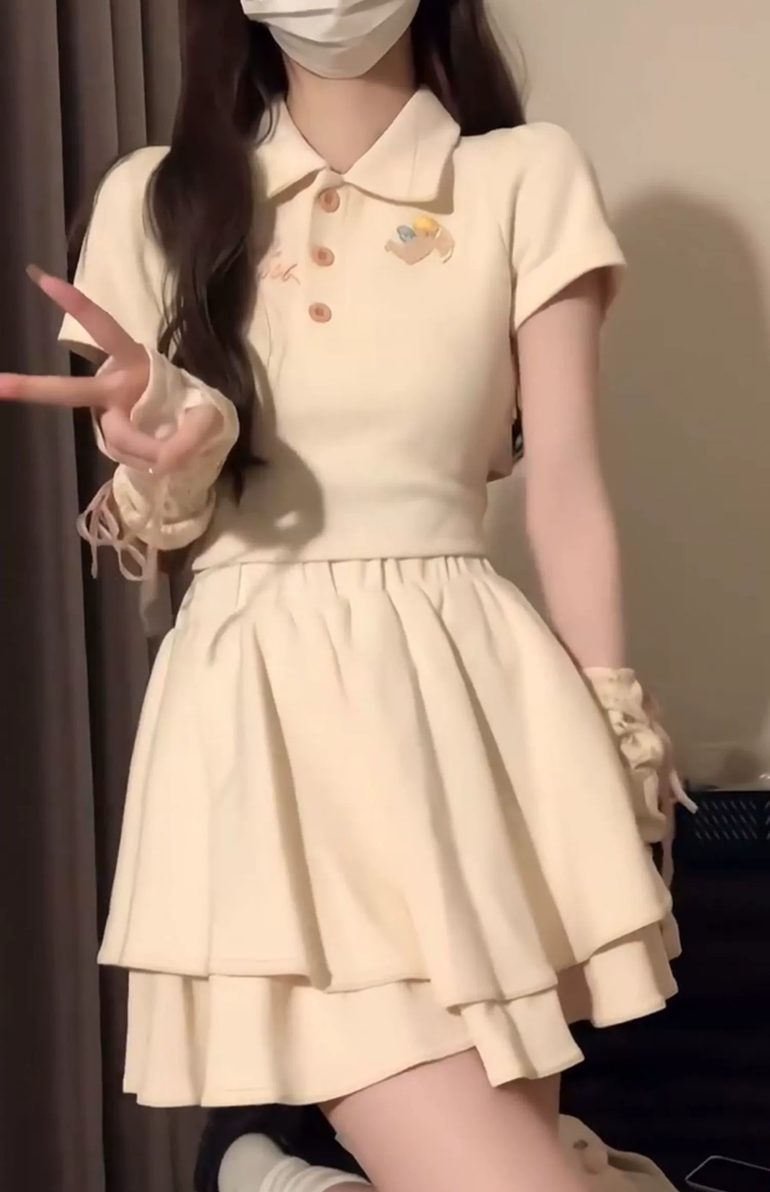 | nameOriginal | Polo summer slimming A-line skirt college style top |