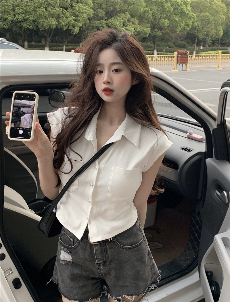 | nameOriginal | polo sweet girl slimming waist sleeveless shirt |