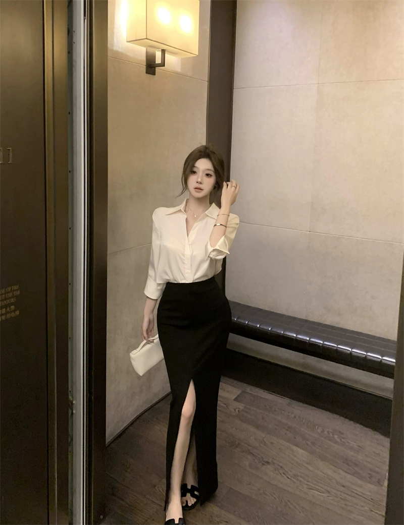 | nameOriginal | polo waist slimming niche chic long-sleeved shirt |