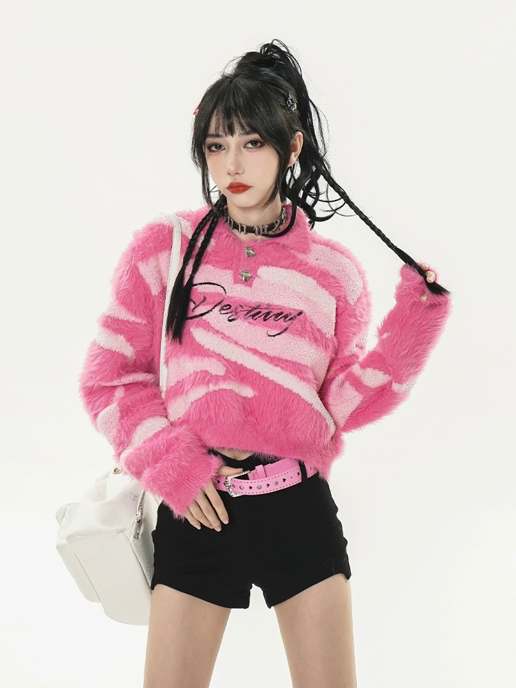 Polo Zebra Print Hot Girl Slim Fit Knitted Sweater