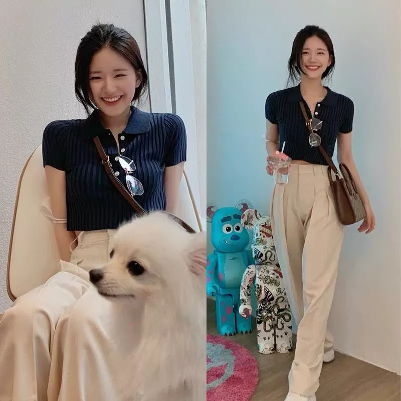 polo Zhao Lusi knitted pit strip slim-fit stand-collar cardigan