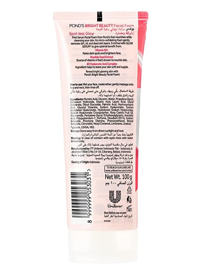 | nameOriginal | Pond's Bright Beauty Serum Facial Foam with Vitamin B3 Spotless Glow for Brighter, Glowing Skin, 100 gm |