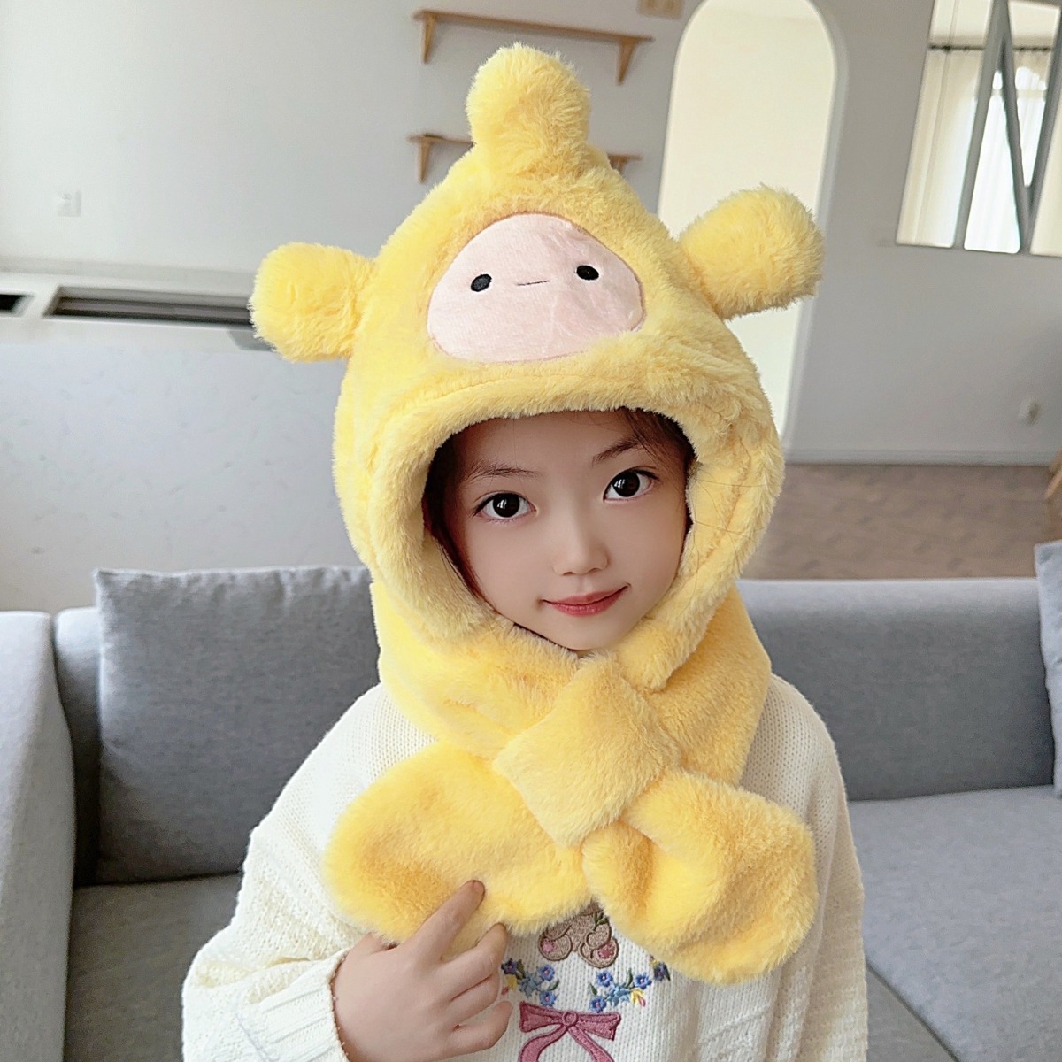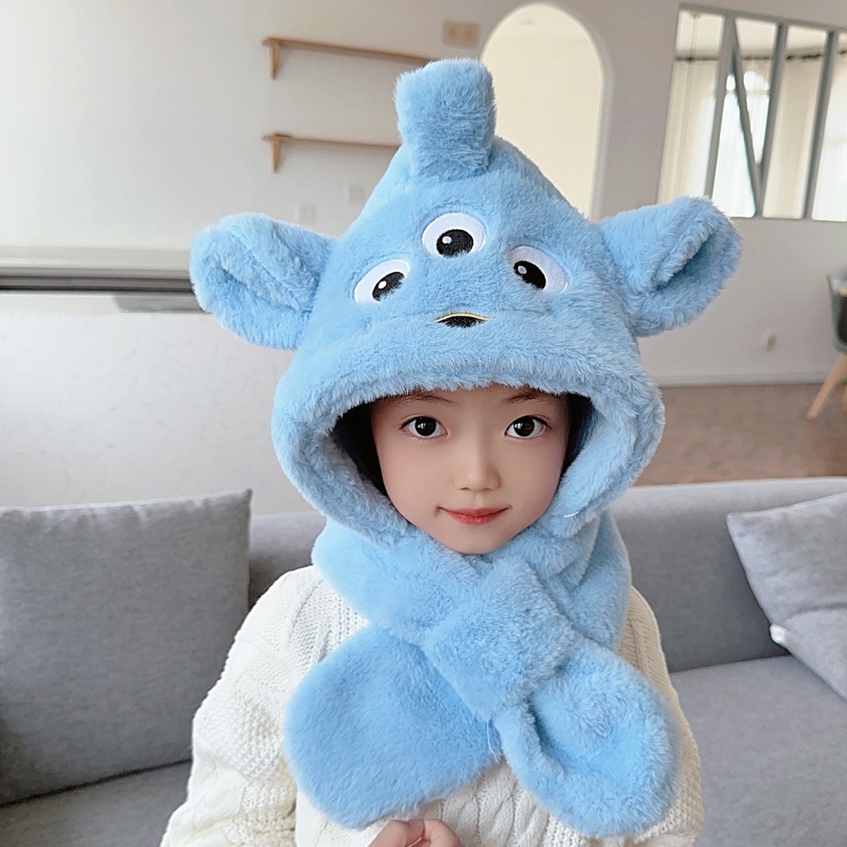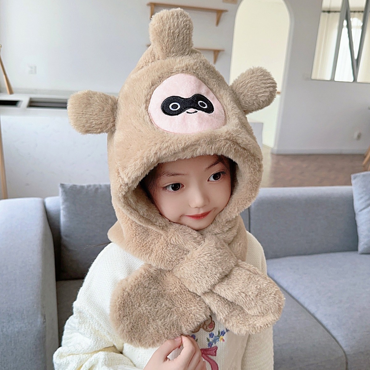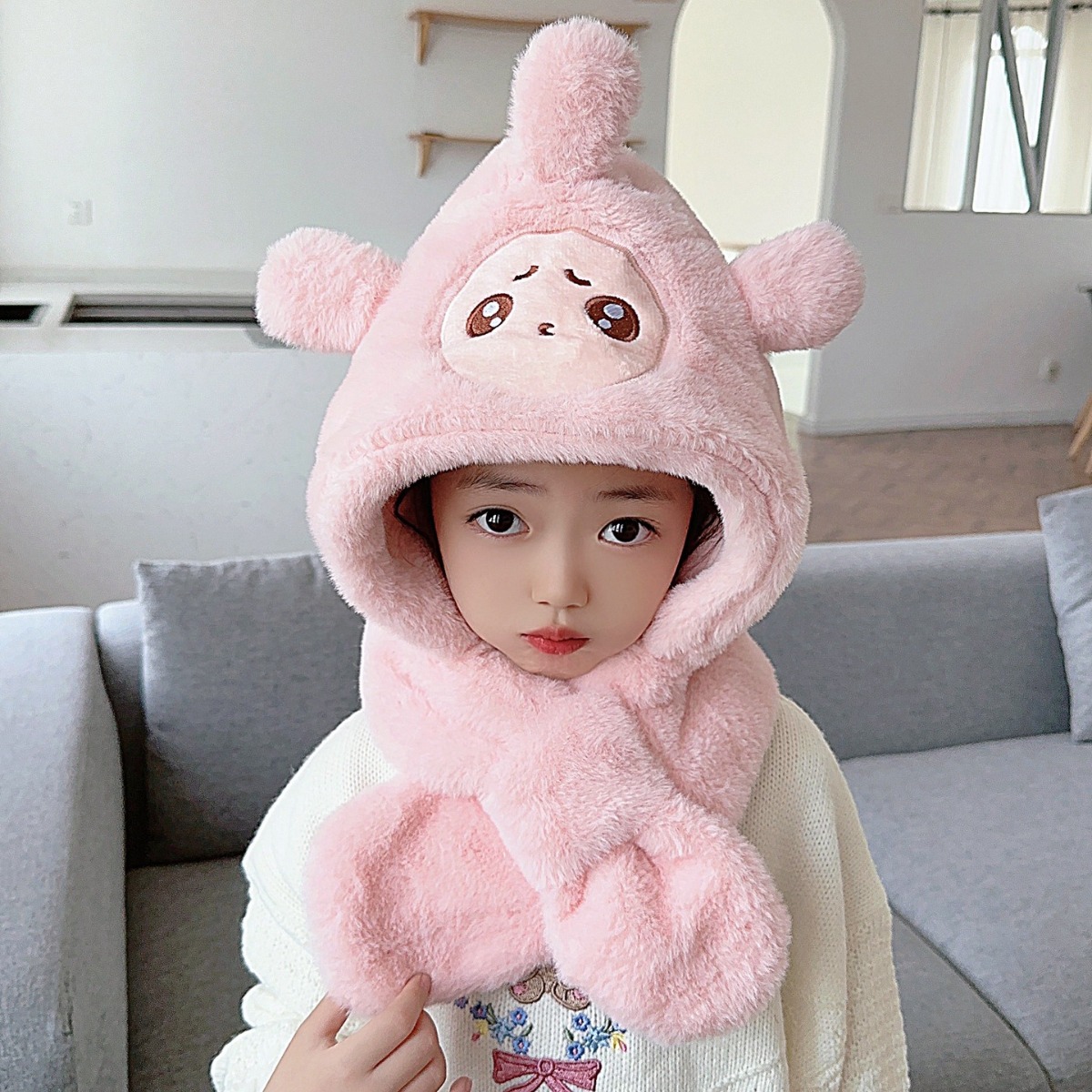 | nameOriginal | Popular children's hat scarf integrated hat cute cartoon embroidery thickened warm windproof male and female baby hat winter |
