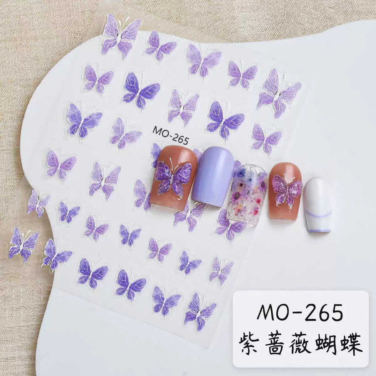 | nameOriginal | Popular embossed Wizard of Oz butterfly nail art stickers purple charm rose butterfly pink jade butterfly nail stickers |