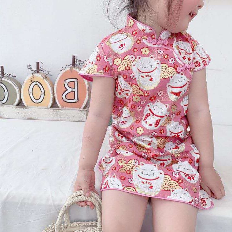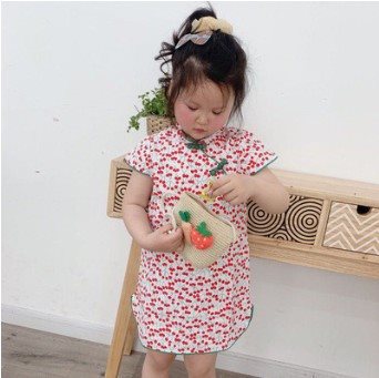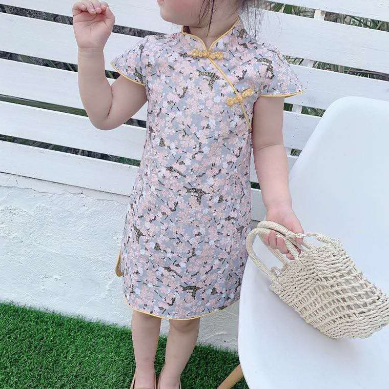 | nameOriginal | <> popular girls children's floral cartoon cotton and linen cheongsam gilded slit dress |