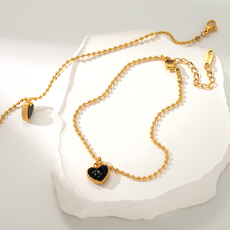 Popular Korean Style Internet Celebrity Summer Ins Simple Red Diamond Black Shellfish Love Titanium Steel Anklet Creative All-match Niche Foot