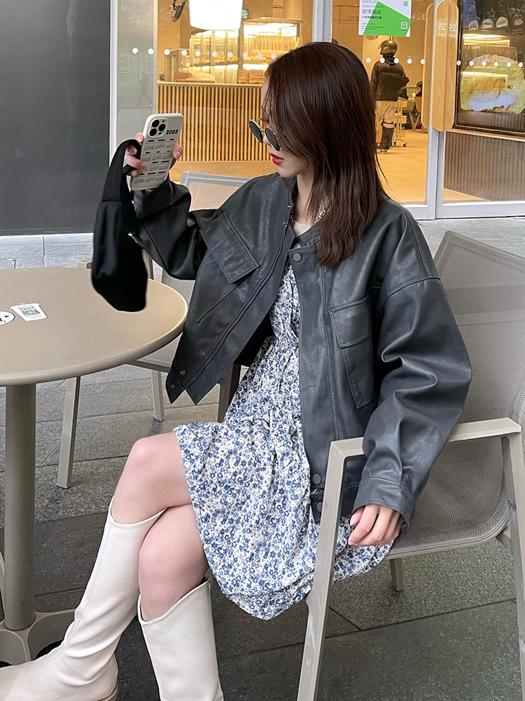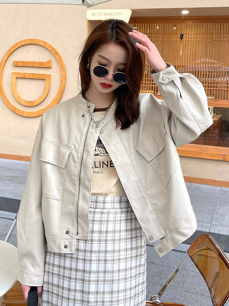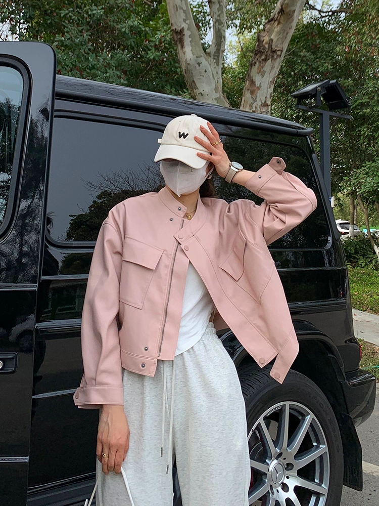 Popular leather jacket women's 2024 autumn and winter fashion new plus velvet small loose short pu motorcycle jacket