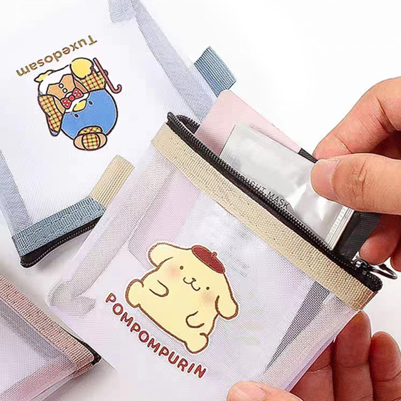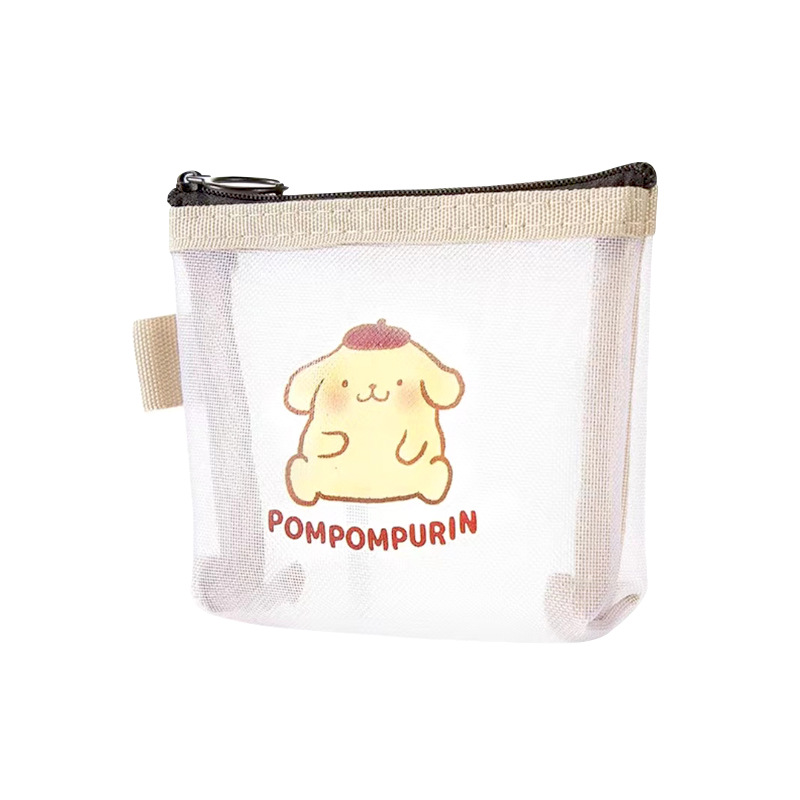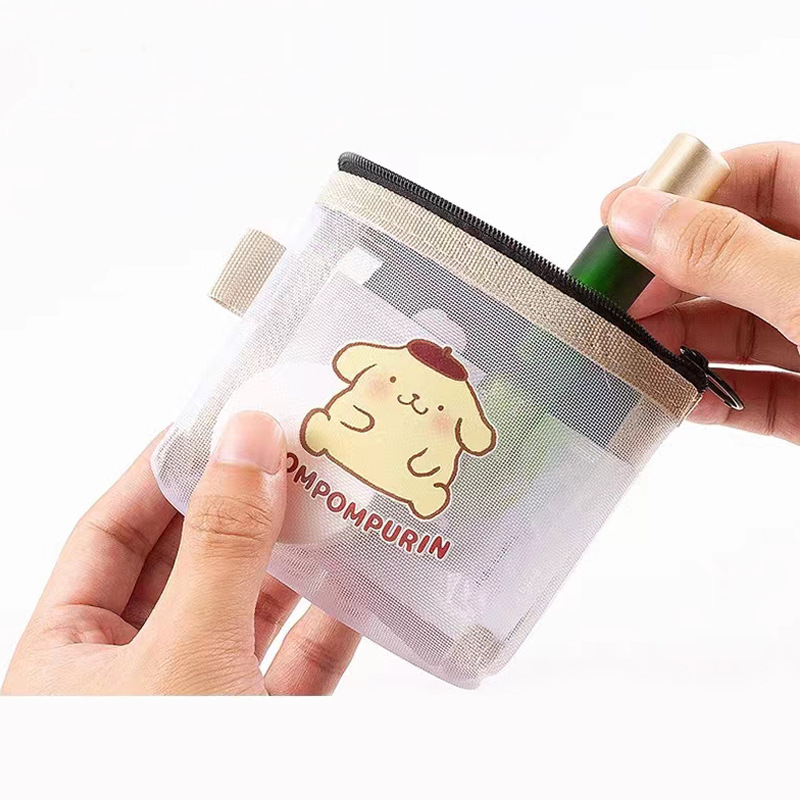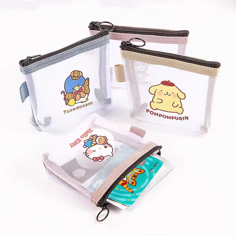 Popular mesh transparent storage bag simple small portable lipstick bag cute cartoon coin purse card zipper bag